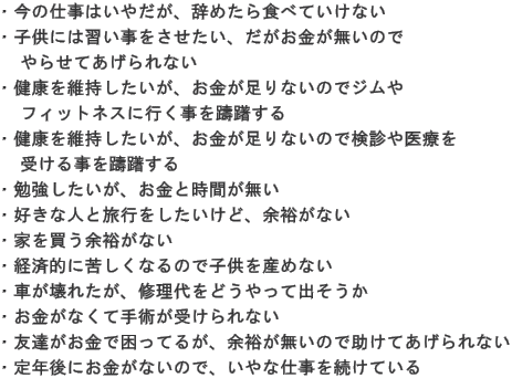 このような問題を解決してくれるのがお金なのです。お金は何かを「買う」だけでなく、あらゆる人生の旅で最高の体験をさせてくれますし、精神的な自由も手に入れ、問題も解決してくれるのです。