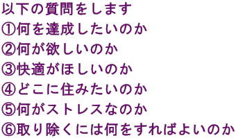あなたは、自分のやりたいこと、実現したいこと、夢の達成を自分に質問していきます。